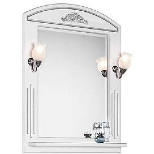 - Зеркало Кармен 75: влагостойкое зеркало, резная рама с портиком и полкой, патинированая серебром.