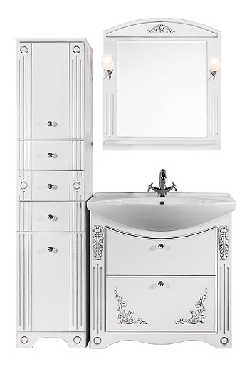 Водолей Мебель для ванной "Кармен 85" 2 ящика, белая/серебро