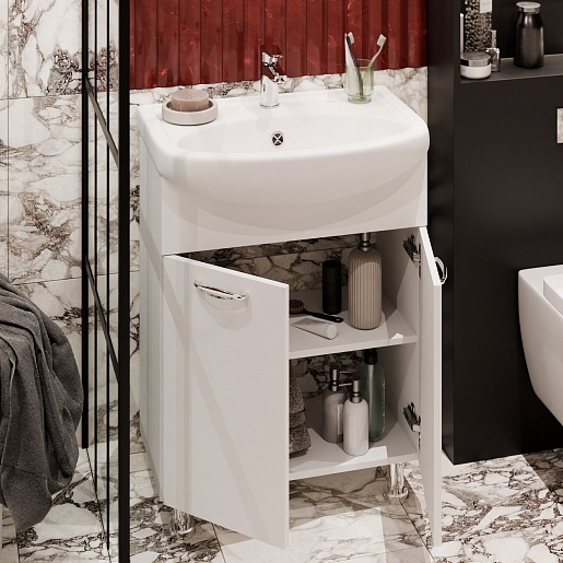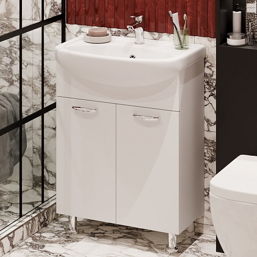 - Тумба под раковину Классик 60: умывальник Уют 60, дверца - 2 шт., ручка - 2 шт., вкладная полка - 1 шт., ножки