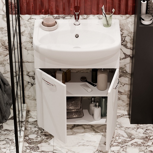 - Тумба под раковину Классик 60: умывальник Уют 60, дверца - 2 шт., ручка - 2 шт., вкладная полка - 1 шт., ножки