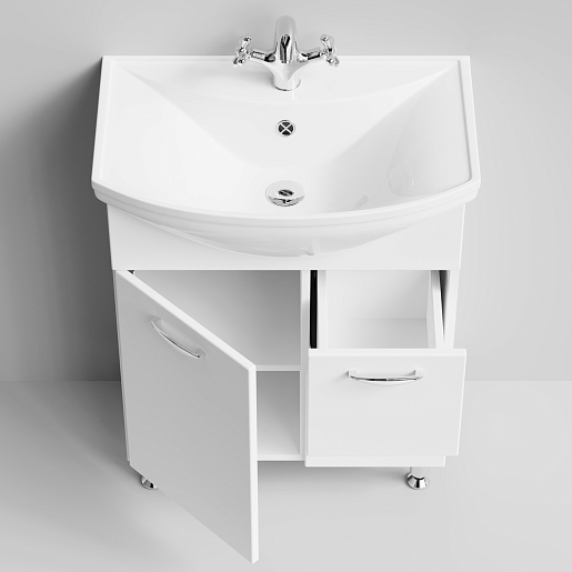 Цвет: Белый.Комплектация: Тумба с раковиной, раковина Стиль 65, регулируемые по высоте ножки.