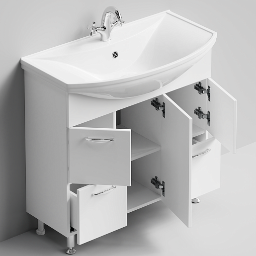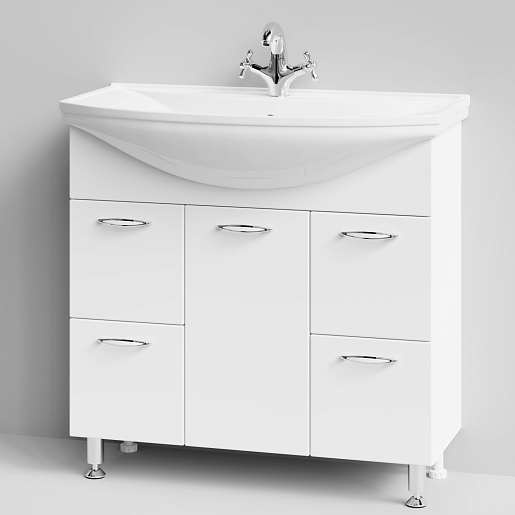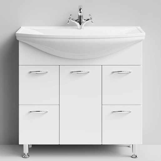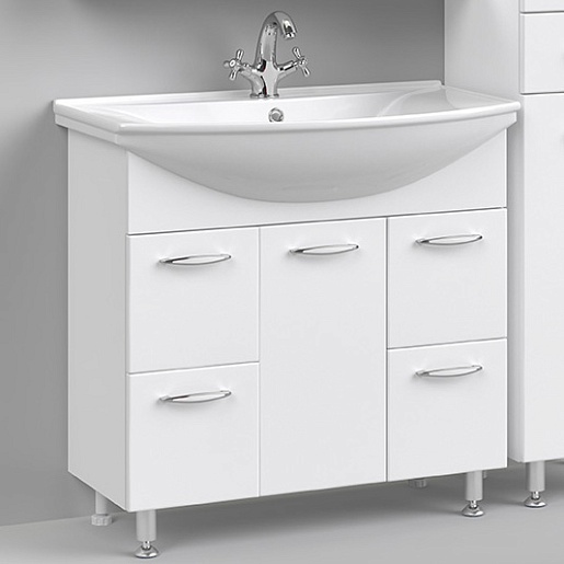 Цвет: Белый.Комплектация: Тумба с раковиной Стиль 85, регулируемые по высоте ножки.