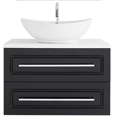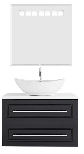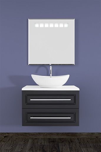 - Тумба с раковиной Либретто 80: Раковина Гамма 56 см, тумба подвесная со столешницей (композитный материал) под накладную раковину, ручки из металла, петли и ящики с доводчиками.