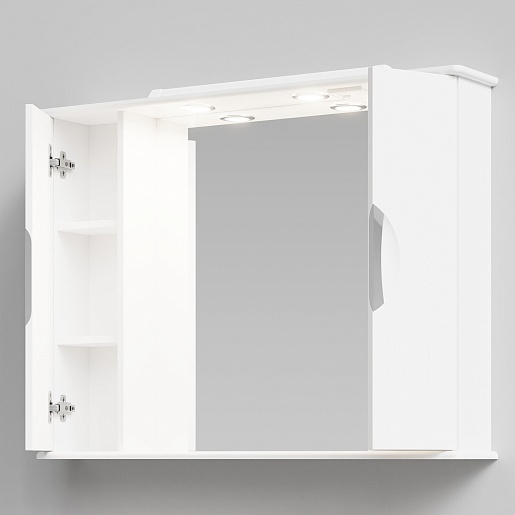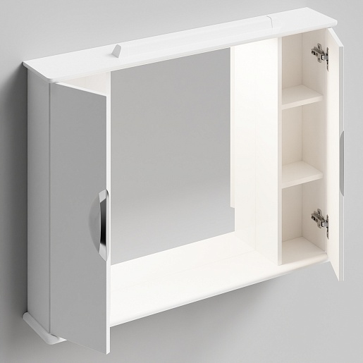 - Зеркальный шкаф Лира 105: распашной шкафчик - 2 шт., вкладные полки, галогенный светильник - 2 шт., выключатель и розетка