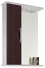 - Зеркальный шкаф Лира 55 L: распашной шкафчик, вкладная полка, галогенный светильник - 1 шт., выключатель и розетка