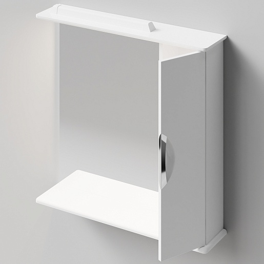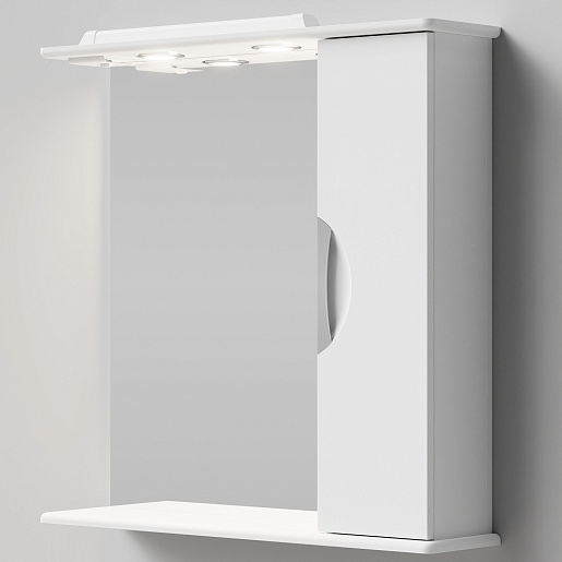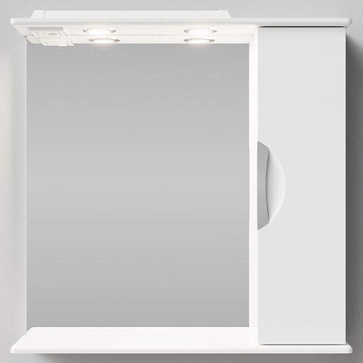 - Зеркальный шкаф Лира 75 R: распашной шкафчик, вкладная полка, галогенный светильник - 2 шт., выключатель и розетка