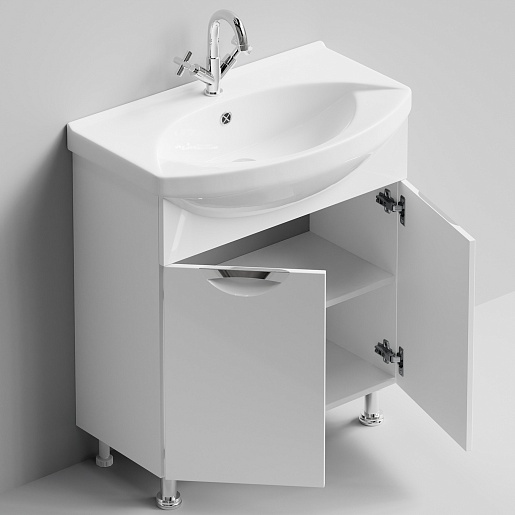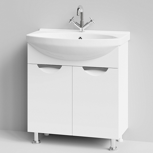 - Тумба с раковиной Лира 75: раковина Лагуна 75, распашная дверца - 2 шт., вкладная полка, ручка (металл, врезная) - 2 шт., ножки (комплект из 4 шт.): металл - 2 шт., пластик - 2 шт.
