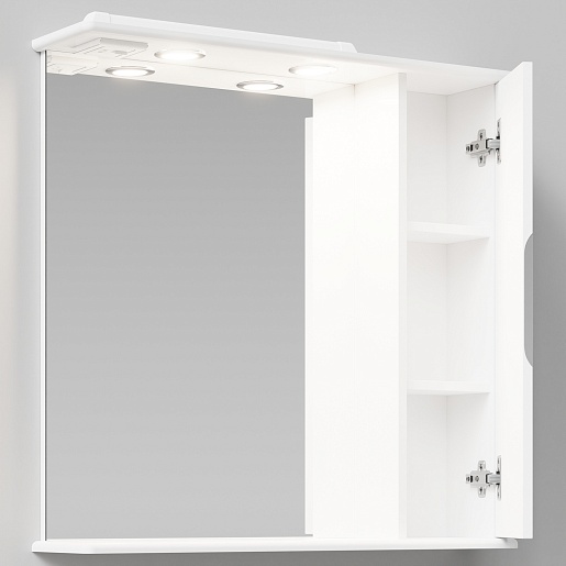 - Зеркальный шкаф Лира 75 R: распашной шкафчик, вкладная полка, галогенный светильник - 2 шт., выключатель и розетка