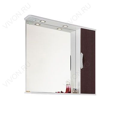 - Зеркальный шкаф Лира 85 R: распашной шкафчик, вкладная полка, галогенный светильник - 2 шт., выключатель и розетка