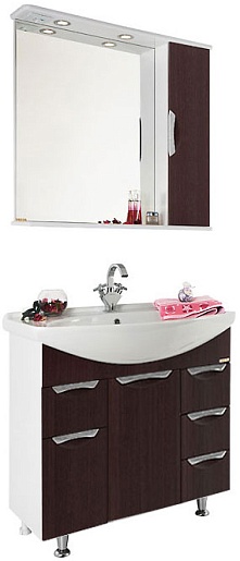 - Тумба с раковиной Лира 85: раковина Лагуна 85, распашные дверцы, вкладные полки, ящики оборудованы системой полного выдвижения., ручка (металл, врезная) - 5 шт., ножки (комплект из 4 шт.): металл - 2 шт., пластик - 2 шт.