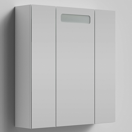 - Зеркальный шкаф Мальта 70: влагостойкое зеркало, галогенная подсветка, розетка и выключатель.