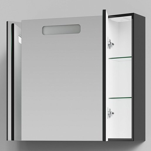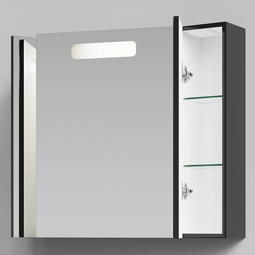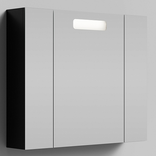 - Зеркальный шкаф Мальта 90: влагостойкое зеркало, галогенная подсветка, розетка и выключатель.