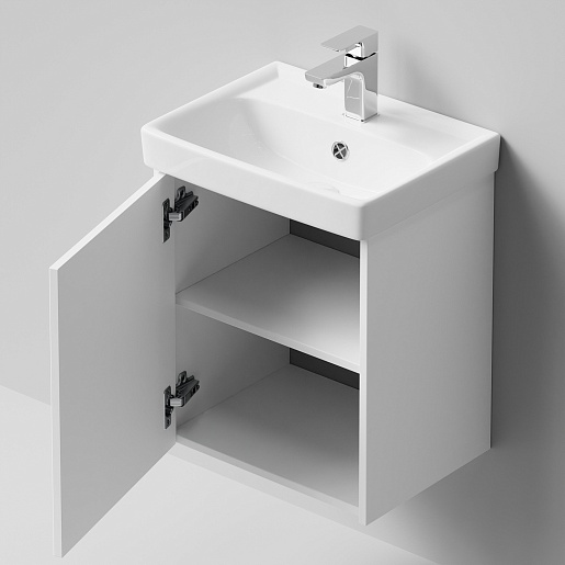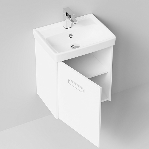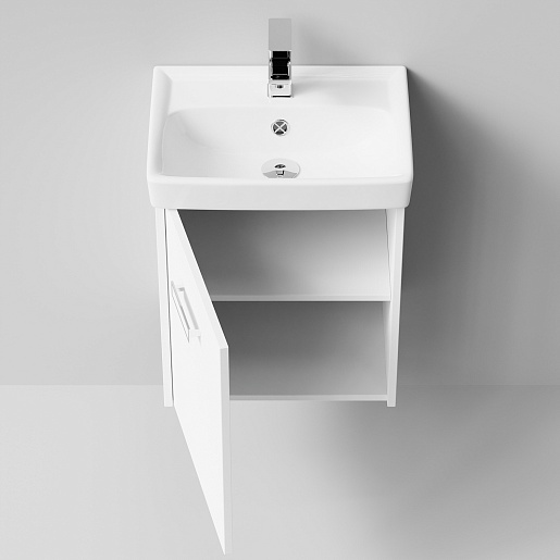 - Тумба под раковину Мона 50: раковина Мини 50, распашная дверца - 1 шт., вкладная полка, ручка (хром, белый пластик) - 1 шт.