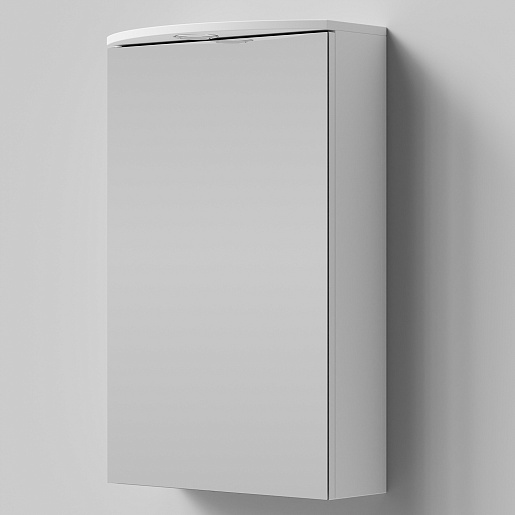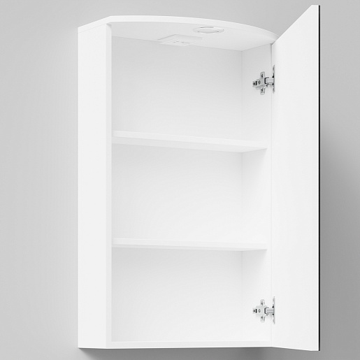 - Зеркальный шкаф Мона 50 R: распашная дверца - 1 шт., вкладная полка - 2 шт., галогенный светильник, выключатель и розетка