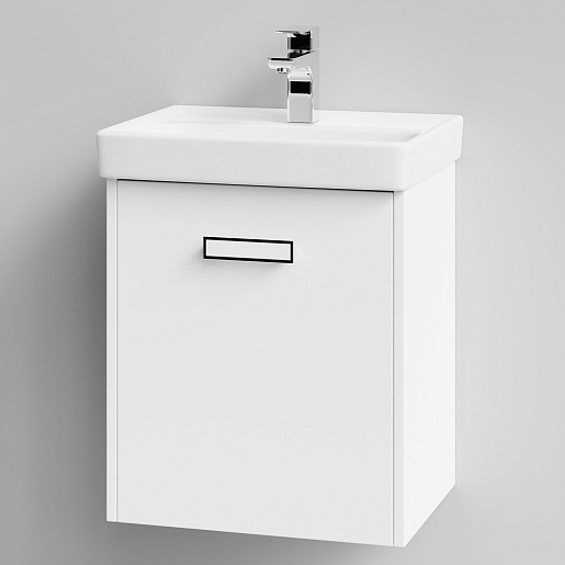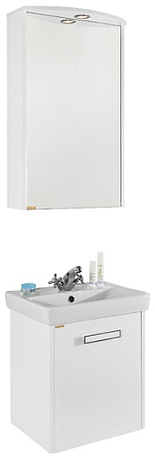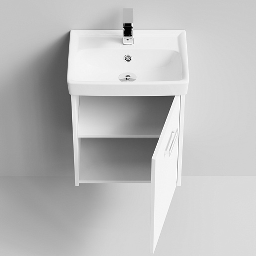 - Тумба под раковину Мона 50: раковина Мини 50, распашная дверца - 1 шт., вкладная полка, ручка (хром, белый пластик) - 1 шт.