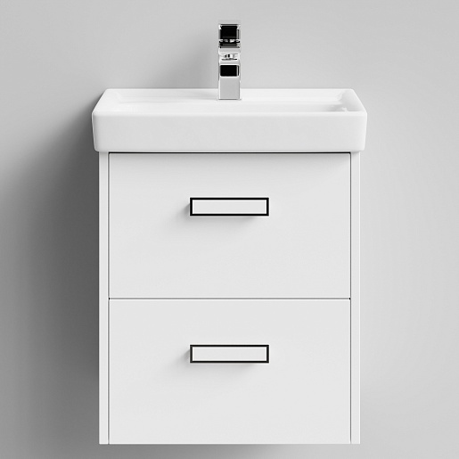 - Тумба под раковину Мона 50 с ящиками: раковина Мини 50, выдвижной ящик - 2 шт., ручка (хром, белый пластик) - 2 шт., ящики оборудованы системой плавного закрывания