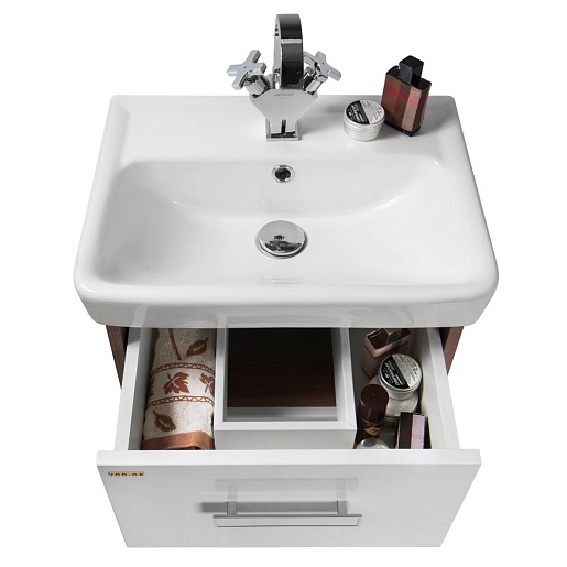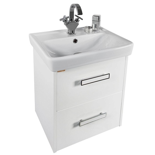 - Тумба под раковину Мона 55 с ящиками: раковина Мини 55, выдвижной ящик - 2 шт., ручка (хром, белый пластик) - 2 шт., ящики оборудованы системой плавного закрывания