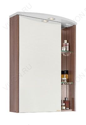 - Зеркальный шкаф Мона 60 L: распашная дверца - 1 шт., вкладная полка - 2 шт., стеклянная полка - 2 шт. галогенный светильник, выключатель и розетка