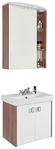 - Тумба под раковину Мона 60: раковина Мини 60, распашная дверца - 2 шт., вкладная полка, ручка (хром, белый пластик) - 2 шт.