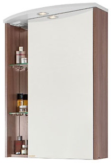 - Зеркальный шкаф Мона 60 R: распашная дверца - 1 шт., вкладная полка - 2 шт., стеклянная полка - 2 шт. галогенный светильник, выключатель и розетка