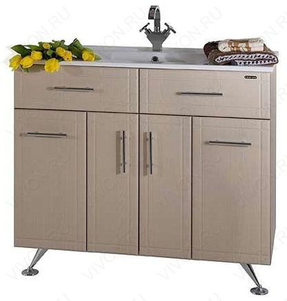 Комплектация: Тумба с раковиной, умывальник Elen, регулируемые по высоте ножки, бельевая корзина.
