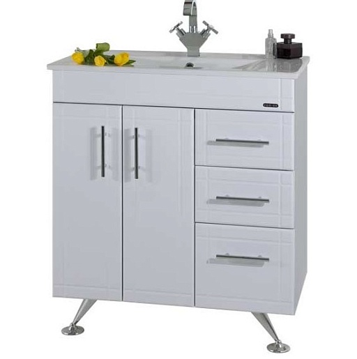 Комплектация: Тумба с раковиной, умывальник Ницца 75,регулируемые по высоте ножки.