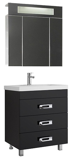 Водолей Мебель для ванной Орландо 80 с зеркальным шкафом Квадро черная