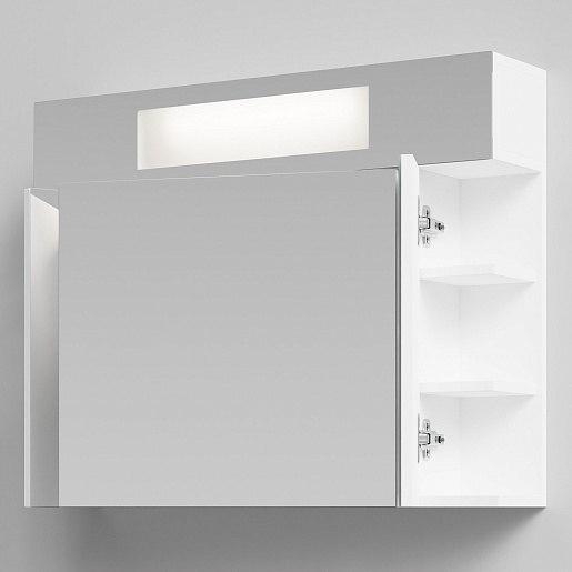 - Зеркальный шкаф Квадро 80: влагостойкое зеркало, галогенная подсветка.