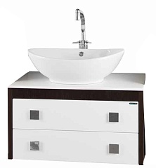 Комплектация: Подвесная тумба со столешницей S-40 с двумя выдвижными ящиками, настольная фаянсовая раковина "Гамма 560", фасад с контрастной отделкой.