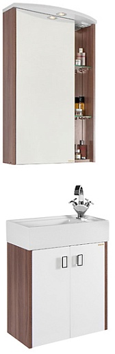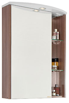 - Зеркальный шкаф Мона 60 L: распашная дверца - 1 шт., вкладная полка - 2 шт., галогенный светильник, выключатель и розетка