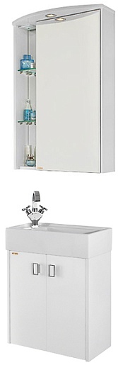 - Зеркальный шкаф Мона 60 R: распашная дверца - 1 шт., вкладная полка - 2 шт., галогенный светильник, выключатель и розетка