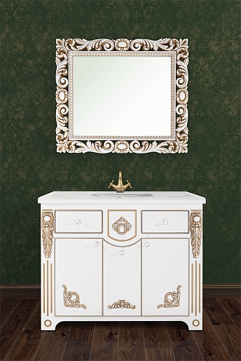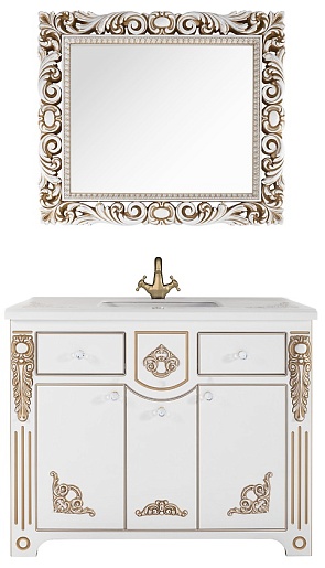 Водолей Мебель для ванной "Версаль 105" белая/золото, зеркало Версаль в раме