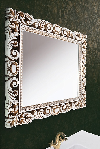 - Зеркало с рамой Версаль 104х90 см: влагостойкое зеркало, резная рама патинированая золотом.