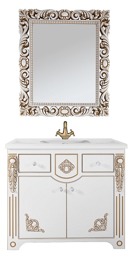 Водолей Мебель для ванной "Версаль 95" белая/золото, зеркало Версаль в раме