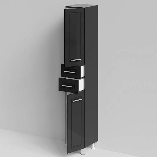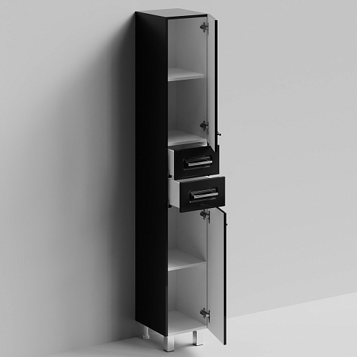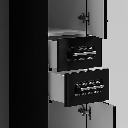 Комплектация: напольный пенал с двумя распашными дверцами и двумя выдвижными ящиками в центре. Ориентация дверей — правая.