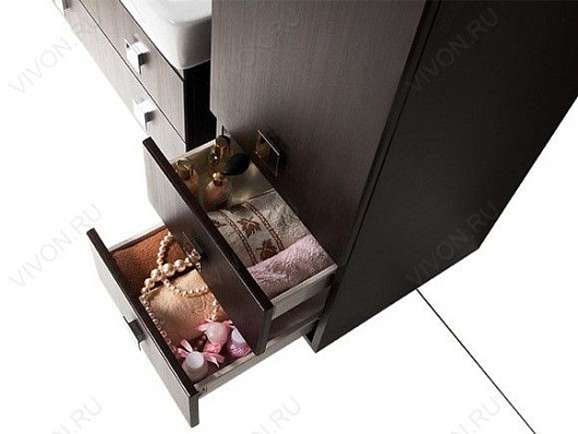 Комплектация: подвесной пенал с большим отделением с распашной дверцей (ориентация правая) и двумя выдвижными ящиками.