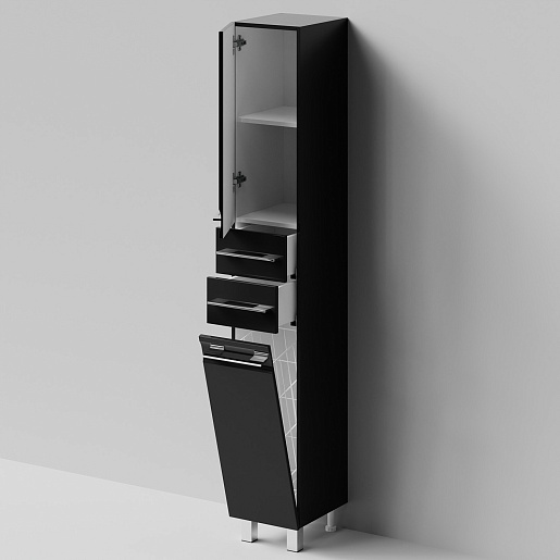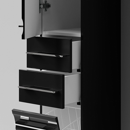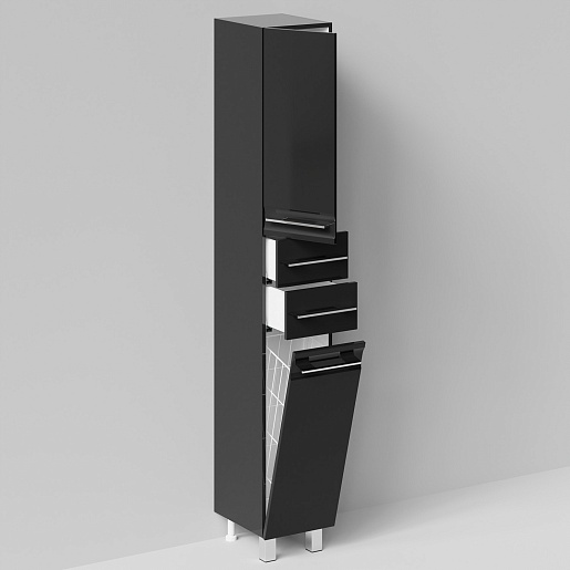 Комплектация: напольный пенал с двумя распашными дверцами и двумя выдвижными ящиками в центре. Бельевая корзина. Ориентация дверей — левая.