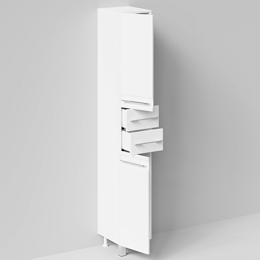 Комплектация: напольный пенал с двумя распашными дверцами и двумя выдвижными ящиками в центре. Ориентация дверей — левая.