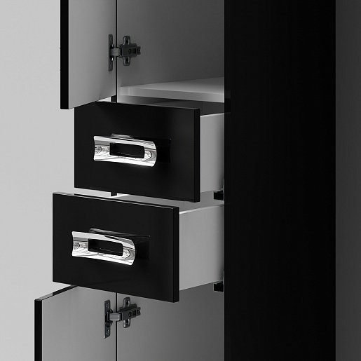 Комплектация: напольный пенал с двумя распашными дверцами и двумя выдвижными ящиками в центре. Ориентация дверей — левая.