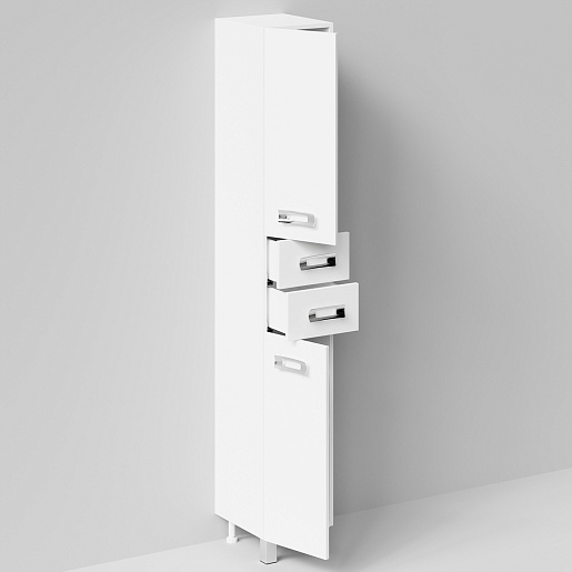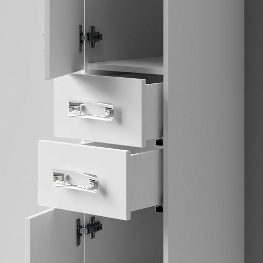 Комплектация: напольный пенал с двумя распашными дверцами и двумя выдвижными ящиками в центре. Ориентация дверей — левая.