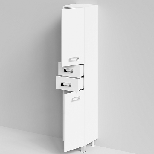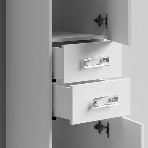Комплектация: напольный пенал с двумя распашными дверцами и двумя выдвижными ящиками в центре. Ориентация дверей — правая.