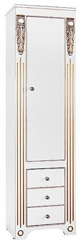Комплектация: напольный пенал с распашной дверцей и тремя выдвижными ящиками. Ящики и дверь оснащены фурнитурой BLUM. Корпус и фасад МДФ Kronospan, покрытие эмаль SAERLAK (Италия).