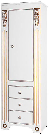Комплектация: напольный пенал с распашной дверцей и тремя выдвижными ящиками. Ящики и дверь оснащены фурнитурой BLUM. Ориентация — правая. Корпус и фасад МДФ Kronospan, покрытие эмаль SAERLAK (Италия).