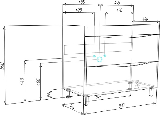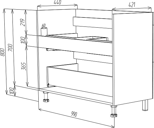 В комплекте: тумба, ножка (4 шт.), комплект креплений.