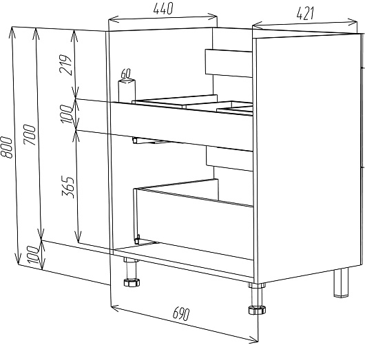 В комплекте: тумба, ножка (4 шт.), комплект креплений.