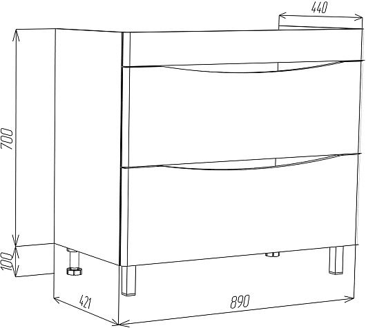 В комплекте: тумба, ножка (4 шт.), комплект креплений.
