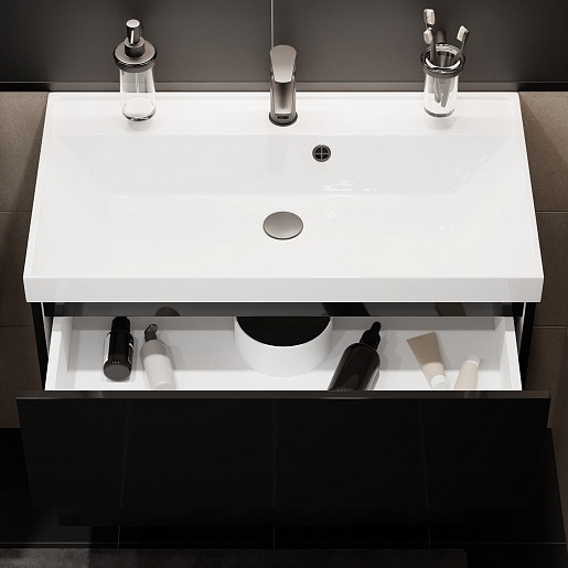 Водолей Тумба под раковину Бест 80 подвесная черная