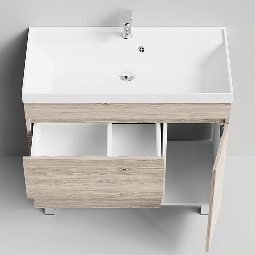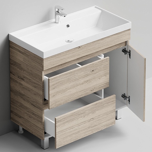 Напольная тумба под раковину Водолей Бест 90 R ореховый дубослив светлый.
