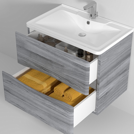 Подвесная тумба с раковиной Водолей Adel 100 лиственница структурная контрастно-серая.