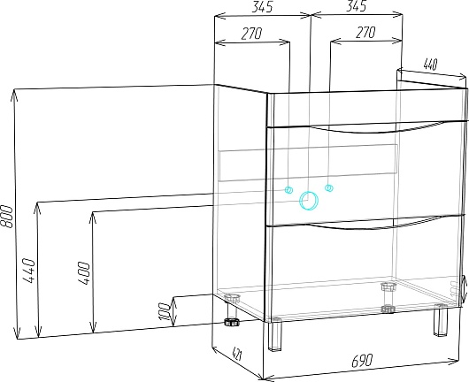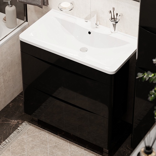 В комплекте: тумба, раковина, ножка (4 шт.), комплект креплений.
